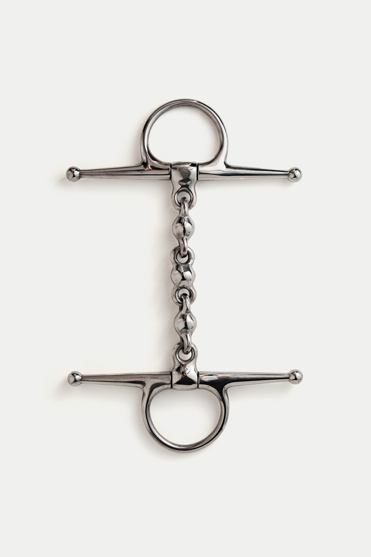 Mila Full Cheek Waterford Bit – a dynamic choice for your horse’s comfort and responsiveness. Crafted from stainless steel with three ball shaped links, this bit is designed to discourage the horse from gripping the bit too strongly, promoting a lighter, more responsive contact. The jointed design ensures the bit moves freely, encouraging the horse to play and engage with it. This flexibility is particularly effective for horses prone to leaning, gripping the bit, or resisting guidance. The mouthpiece evenly distributes pressure over the tongue and bars.