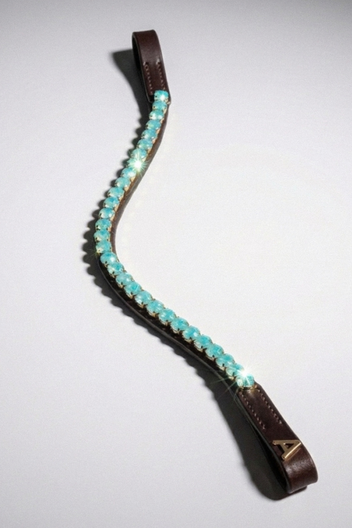 Featuring a gracefully curved shape, the browband follows the natural contours of the horse’s forehead for a comfortable fit, while the high-quality crystal stones catch the light beautifully, available in a variety of colors to suit your personal style. The secure stitching and premium materials ensure the browband retains its shape and brilliance ride after ride, making it a reliable addition to your tack collection.