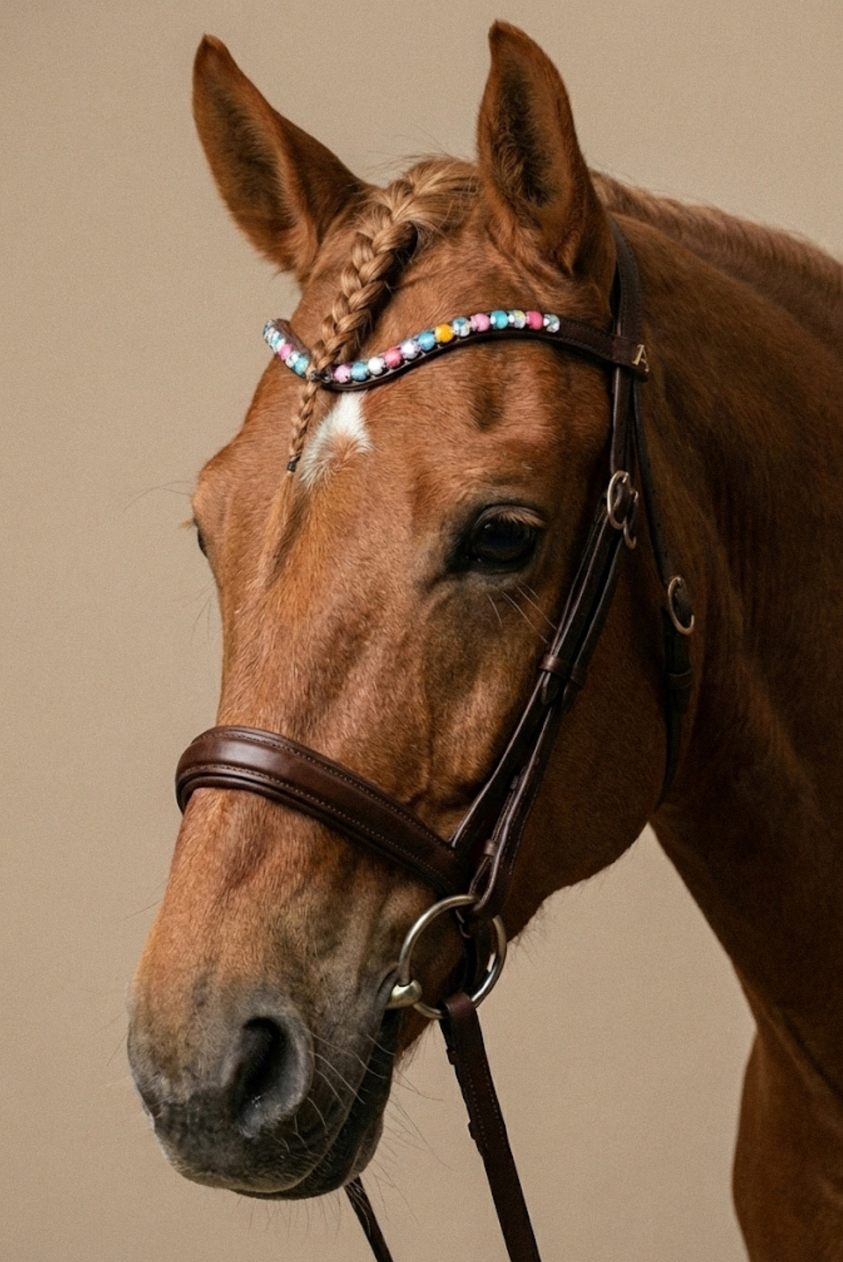 Add a touch of refined elegance to your bridle with the Amiko Browband Crystal Bent. Designed for riders who value both style and functionality, this browband combines durable craftsmanship with sparkling details that enhance your horse’s presence in the arena.