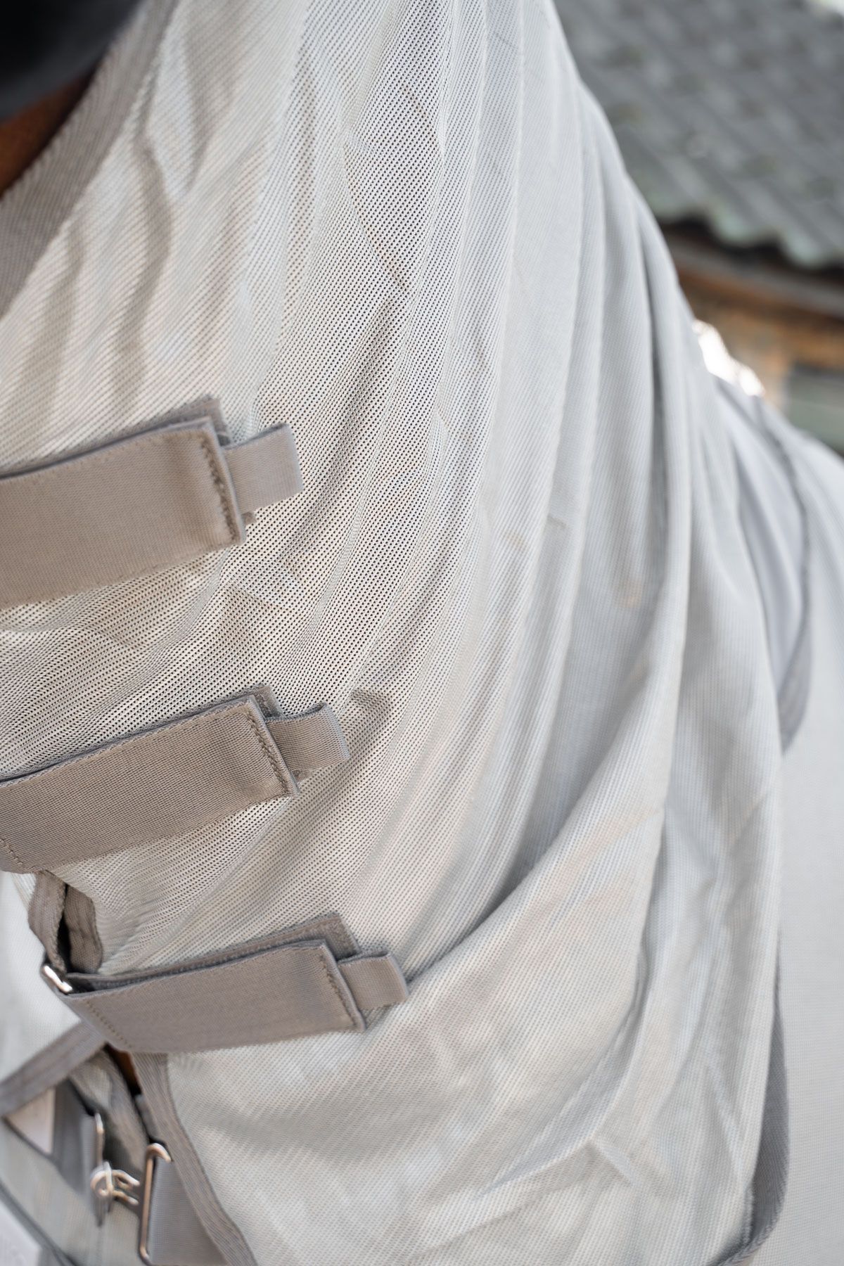 Designed with both function and style in mind, our Mesh Fly Rug features an anatomical shape that stays securely in place, even during vigorous movement. The robust hook and loop fastenings, along with the special triangle closure, allow for precise adjustments to ensure a perfect fit every time. The belly flap and elongated tail flap with elastic provide extra protection, ensuring your horse remains bug-free from every angle.