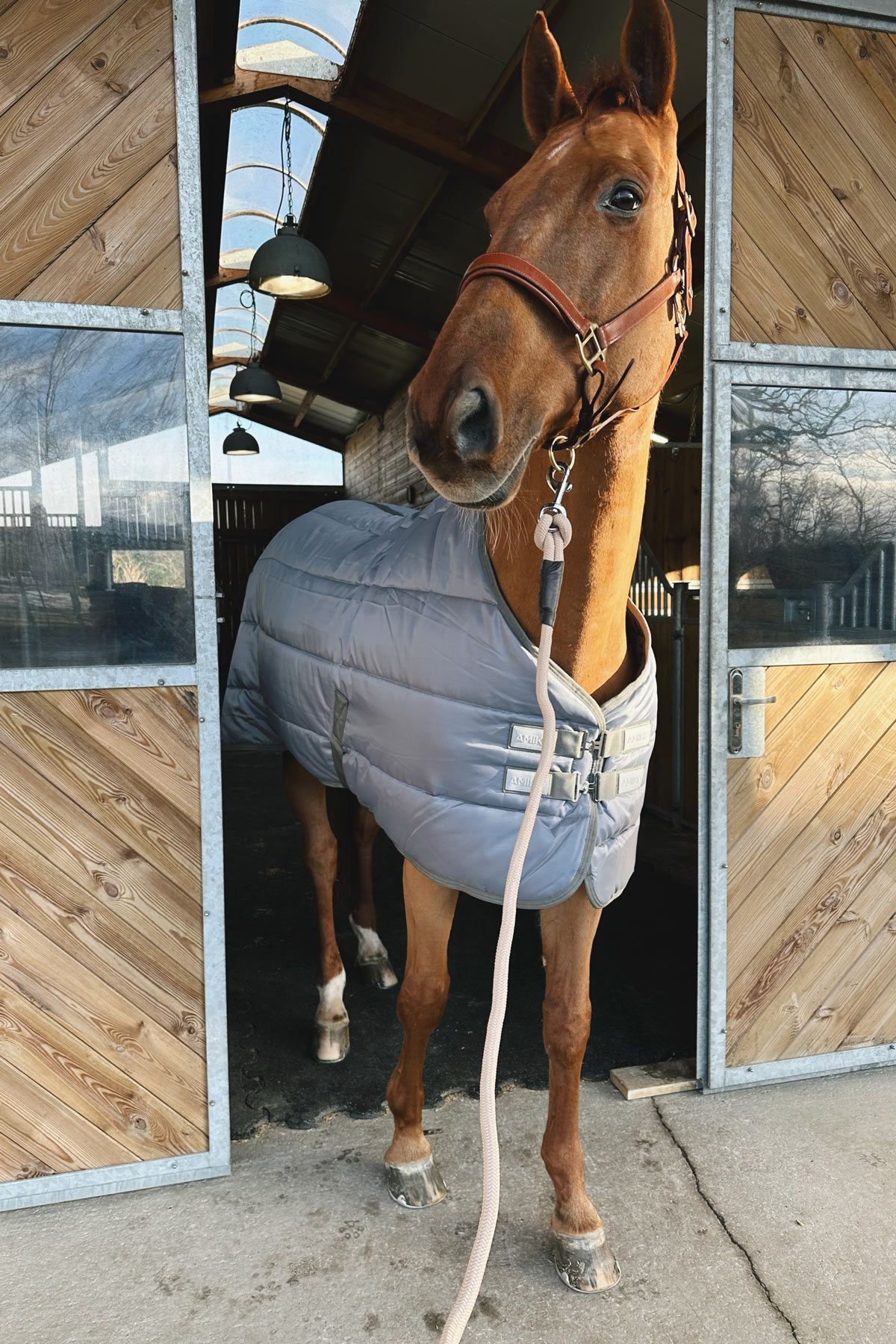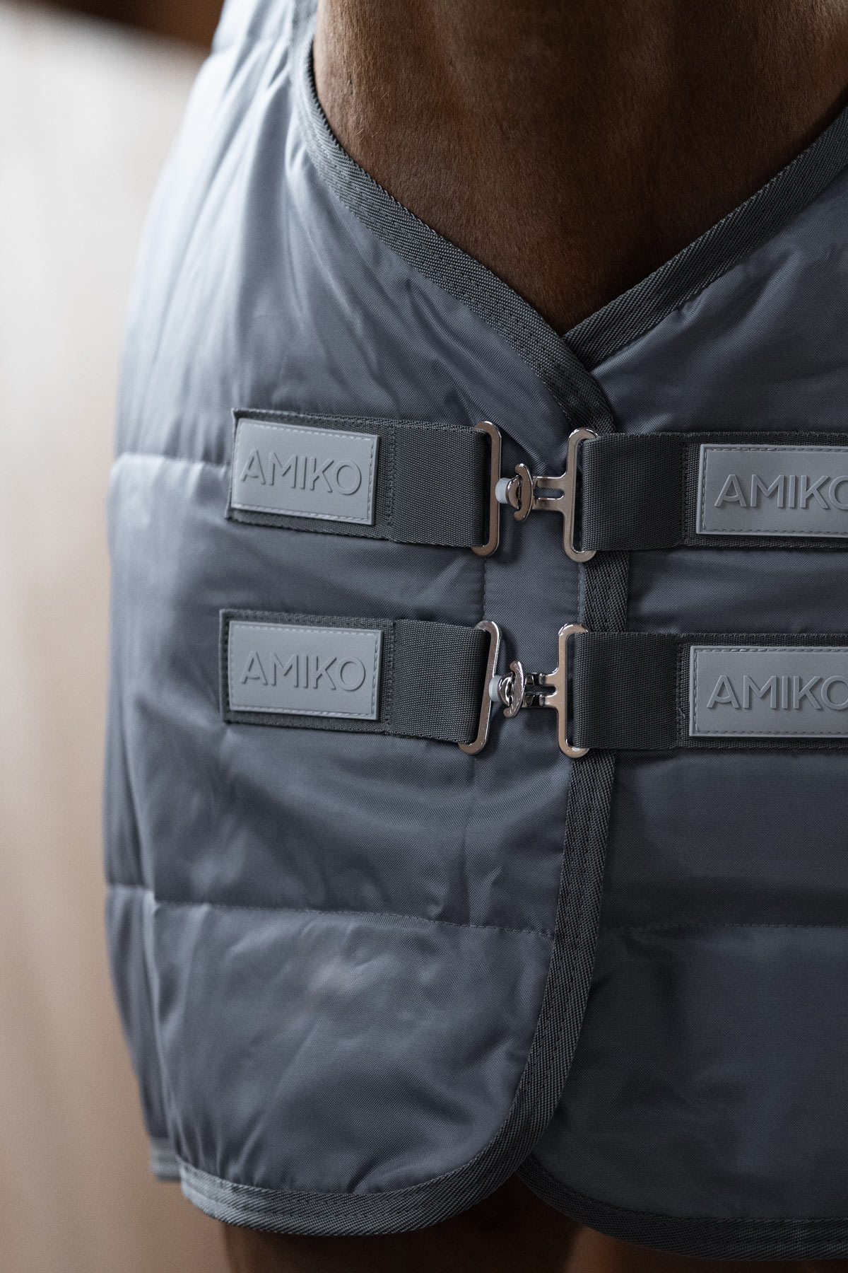 Amiko Essential Rug Indoor – this Indoor Stable Rug is a sophisticated choice for horses who spend their nights indoors. Its elegant and minimalist design is ideal for most horses, offering both style and functionality. Made of robust, tear-resistant 600D polyester material for lasting durability and longevity. The non-rub shoulder area enhances comfort, reducing chafing and eliminating the need for additional shoulder protection. With double buckles at the front and double cross surcingles, the rug offers a secure and comfortable fit. The artificial sheepskin at the withers adds a touch of luxury while preventing chafing.