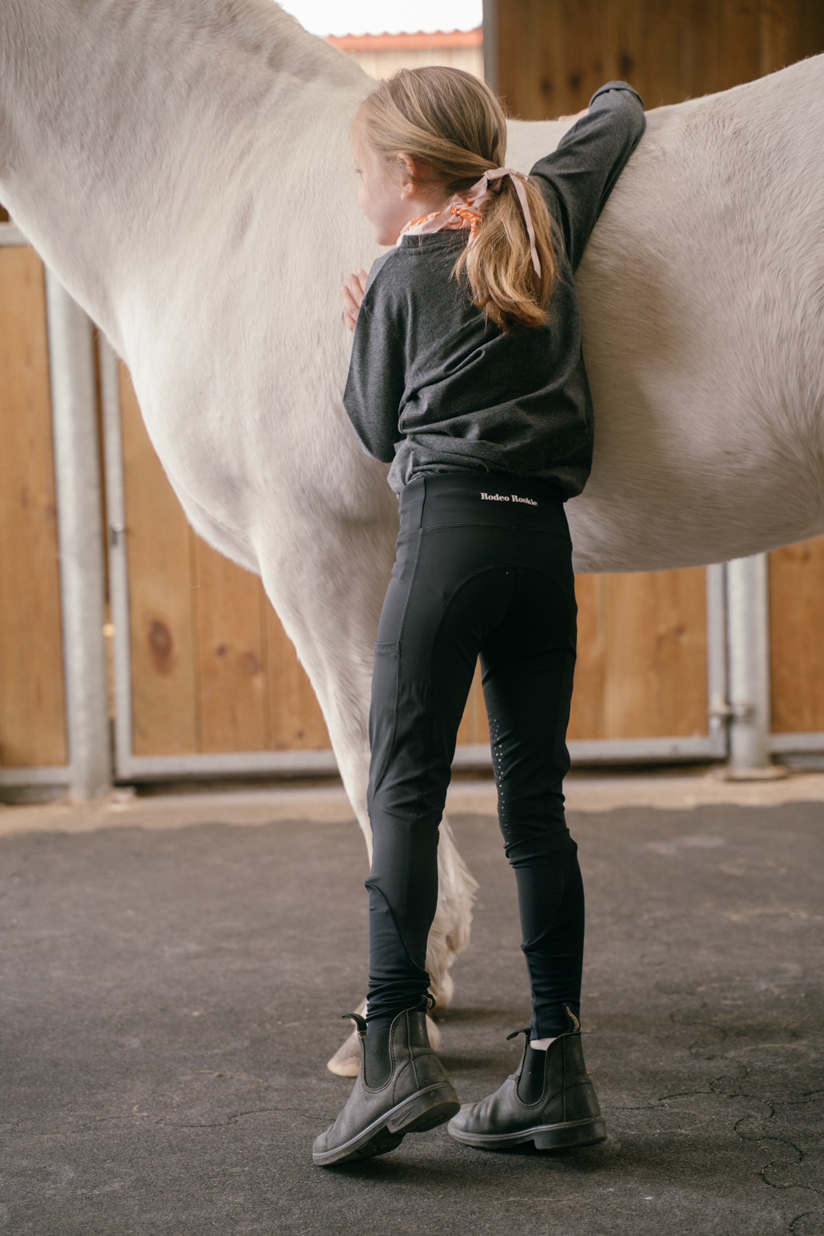 The Rodeo Rookie Billie Breggings offer the perfect mix of style, comfort, and practicality for young riders. Designed for active children, these breggings feature a sticky silicone grip for a stable ride, while the soft, stretchy fabric ensures comfort and freedom of movement.