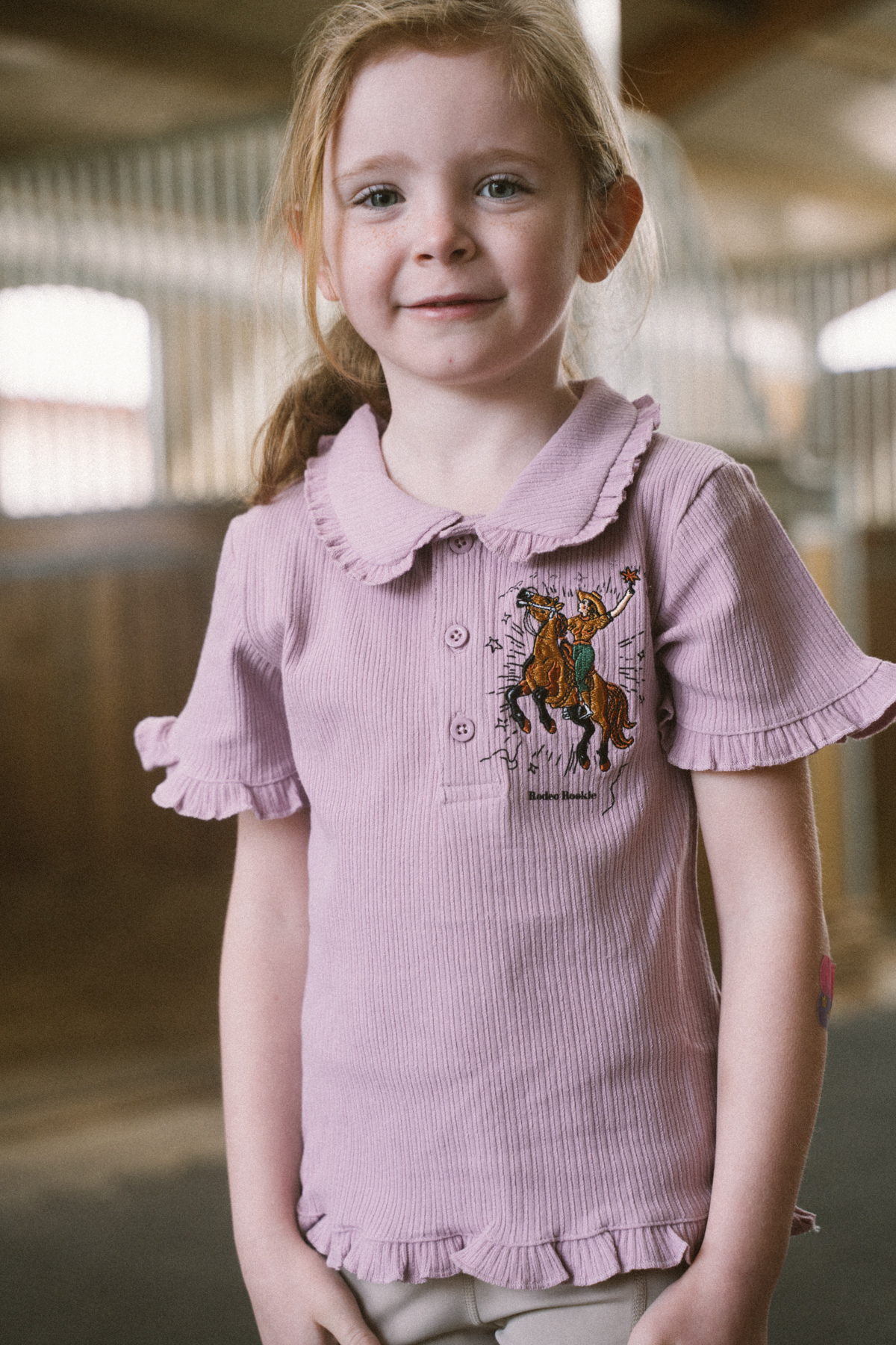The Rodeo Rookie Nova Tee is the perfect blend of style, comfort, and equestrian charm for young riders. Designed with both functionality and everyday wear in mind, this cute t-shirt features a delicate ruffle trim and an adorable horse motif print on the left side, bringing a touch of equestrian spirit to any occasion. Whether it’s a day at the stables or a casual outing, this tee offers a versatile and stylish solution for active kids.