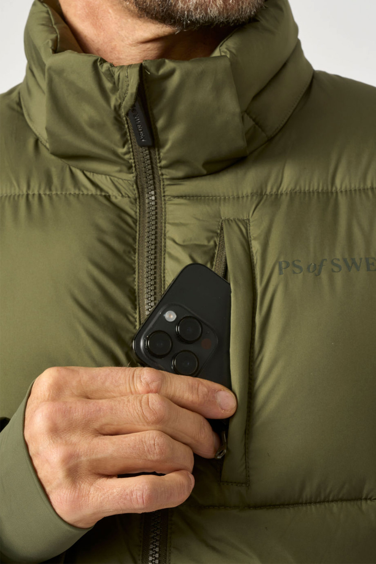 Practical details make the Lucca Puffer as functional as it is elegant: a two-way zipper with the signature PS puller, fleece-lined front pockets with side openings and magnetic flaps, and a secure inner pocket with zipper. Jersey cuffs with thumbholes keep out the wind, adding an extra layer of comfort. Finished with subtle PS monogram branding in gunmetal and a silicone logo patch on the sleeve, this puffer combines equestrian practicality with refined Scandinavian design.