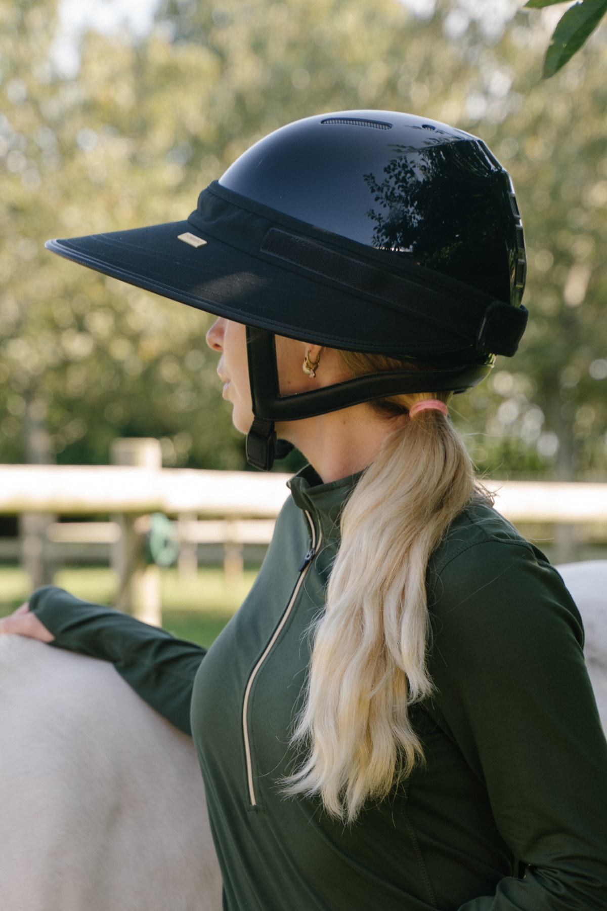 The Pomme Willow Helmet Visor is designed specifically for equestrians who need reliable sun protection while riding. With a tapered brim, this visor shields you from harmful UV rays without obstructing your view. It easily attaches to your helmet with a secure hook and loop tab, ensuring it stays in place during every ride.