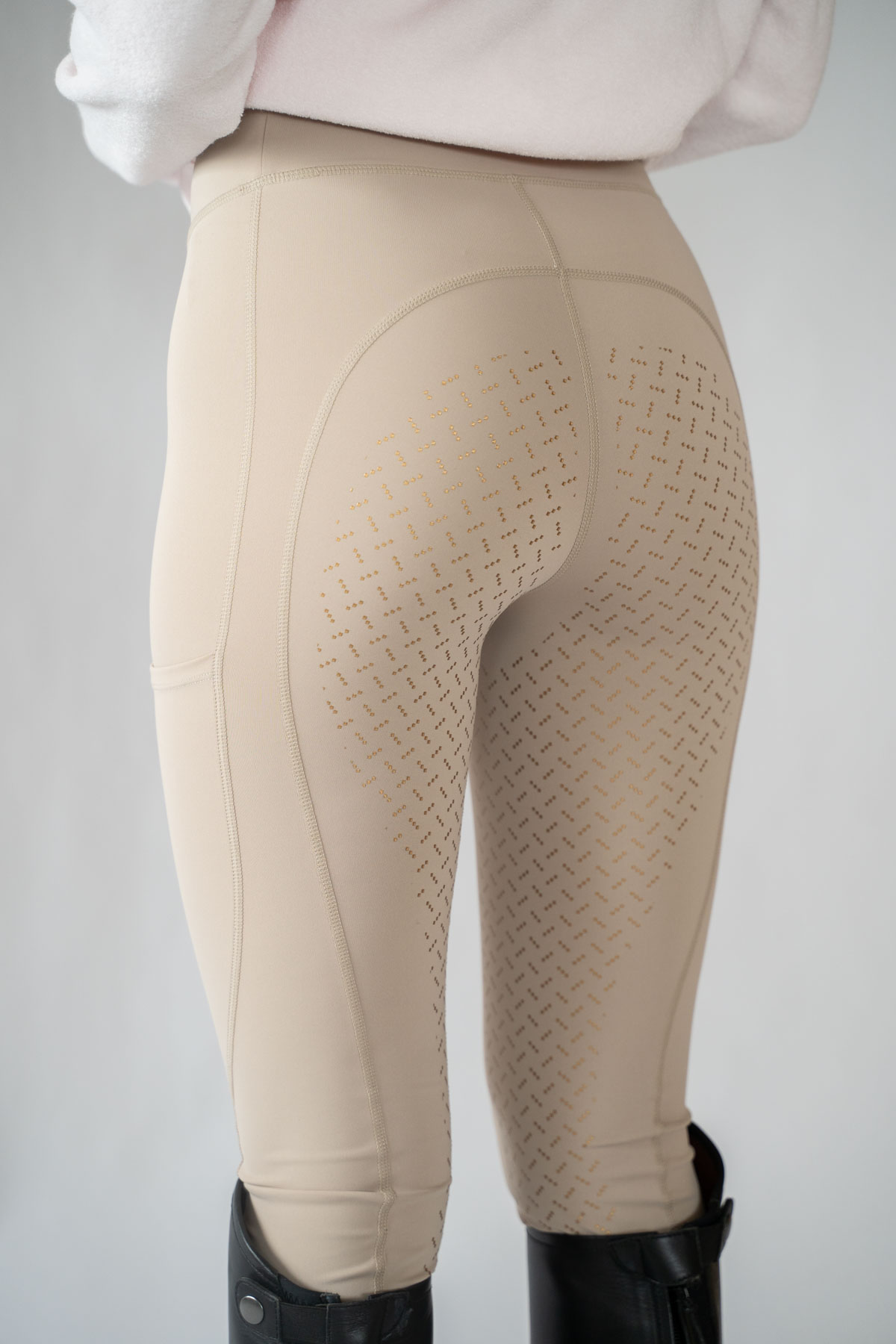 The tights come with a sticky silicone grip and are made in a ventilated, soft stretch fabric that shapes your body and gives you an amazing fit. Nice to both ride and move in and comes with mobile pockets on both sides so that you can keep your mobile or other essential items close at hand. A must-have for your riding wardrobe and a timeless classic that makes you feel classy, badassy and ready to hit the stables.