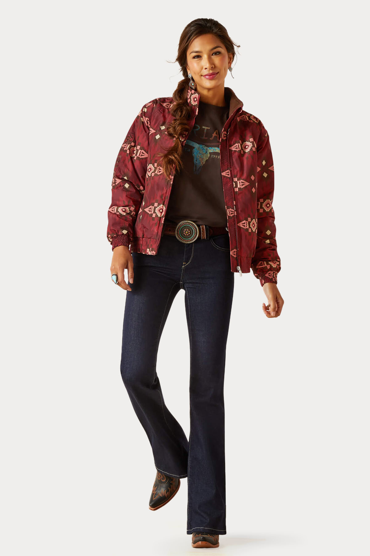 Stay warm and stylish with the Ariat Western Insulated Stable Jacket. Designed for the modern equestrian, this jacket features wind- and water-resistant construction, ensuring you’re prepared for unpredictable weather. The breathable fabric allows for comfortable movement, while the 120g Recycled Cool Climate Insulation™ provides lightweight warmth without bulk. Perfect for chilly mornings at the barn or casual outings, the Alamo Print adds a touch of western flair to your wardrobe. Made from recycled materials, this jacket not only keeps you cozy but also supports sustainable practices.