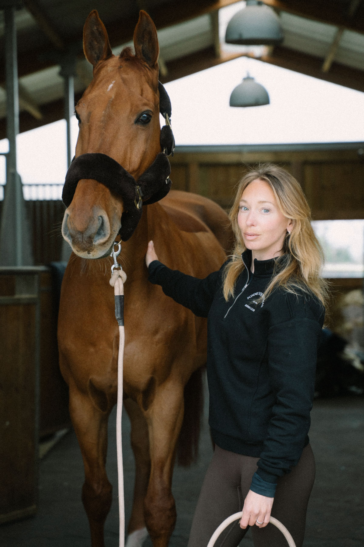 The perfect addition to your equestrian wardrobe: Pomme Club Crewneck with half zipper. Crafted for comfort and practicality, this crewneck is a cozy essential for riders.