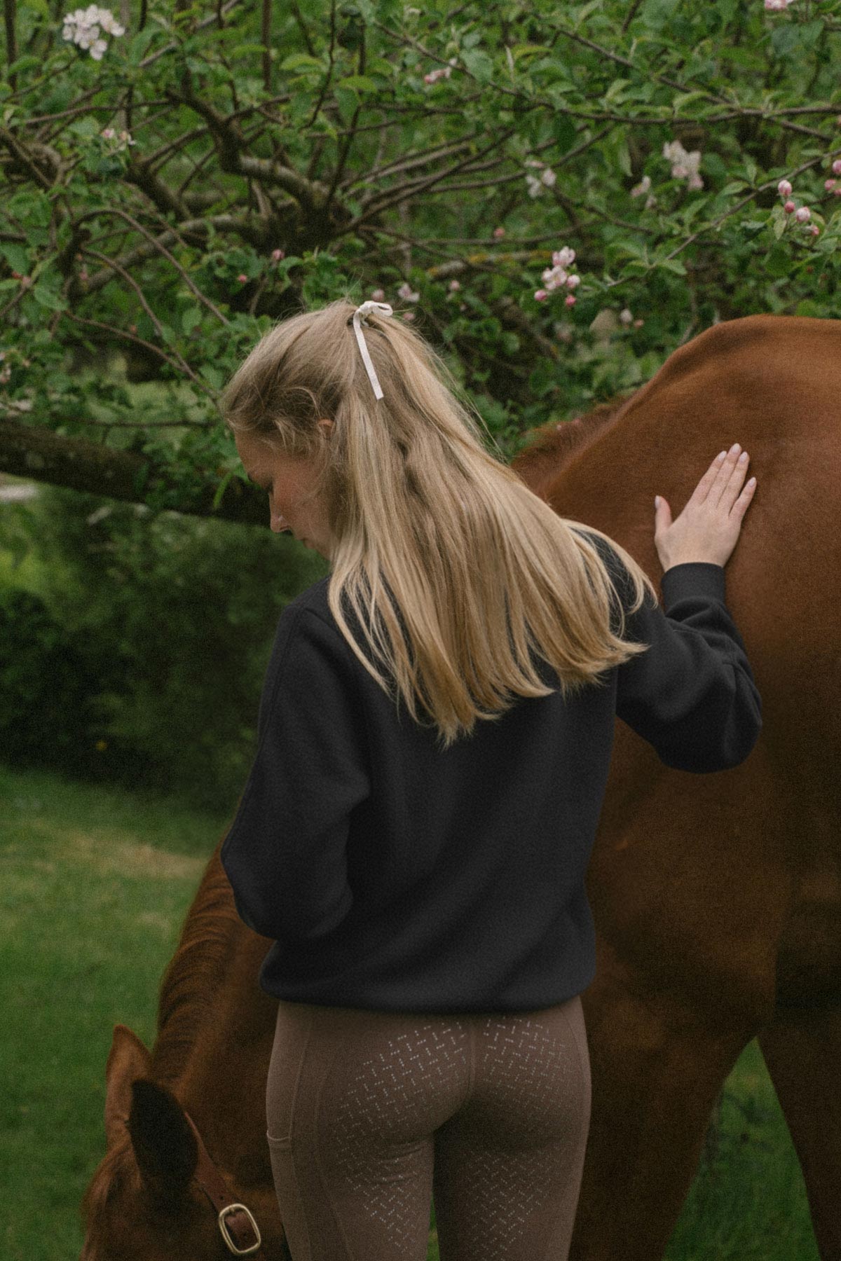 The model wears size x-small. The sweater is normal in size and we recommend you to choose the size you usually wear in sweaters.