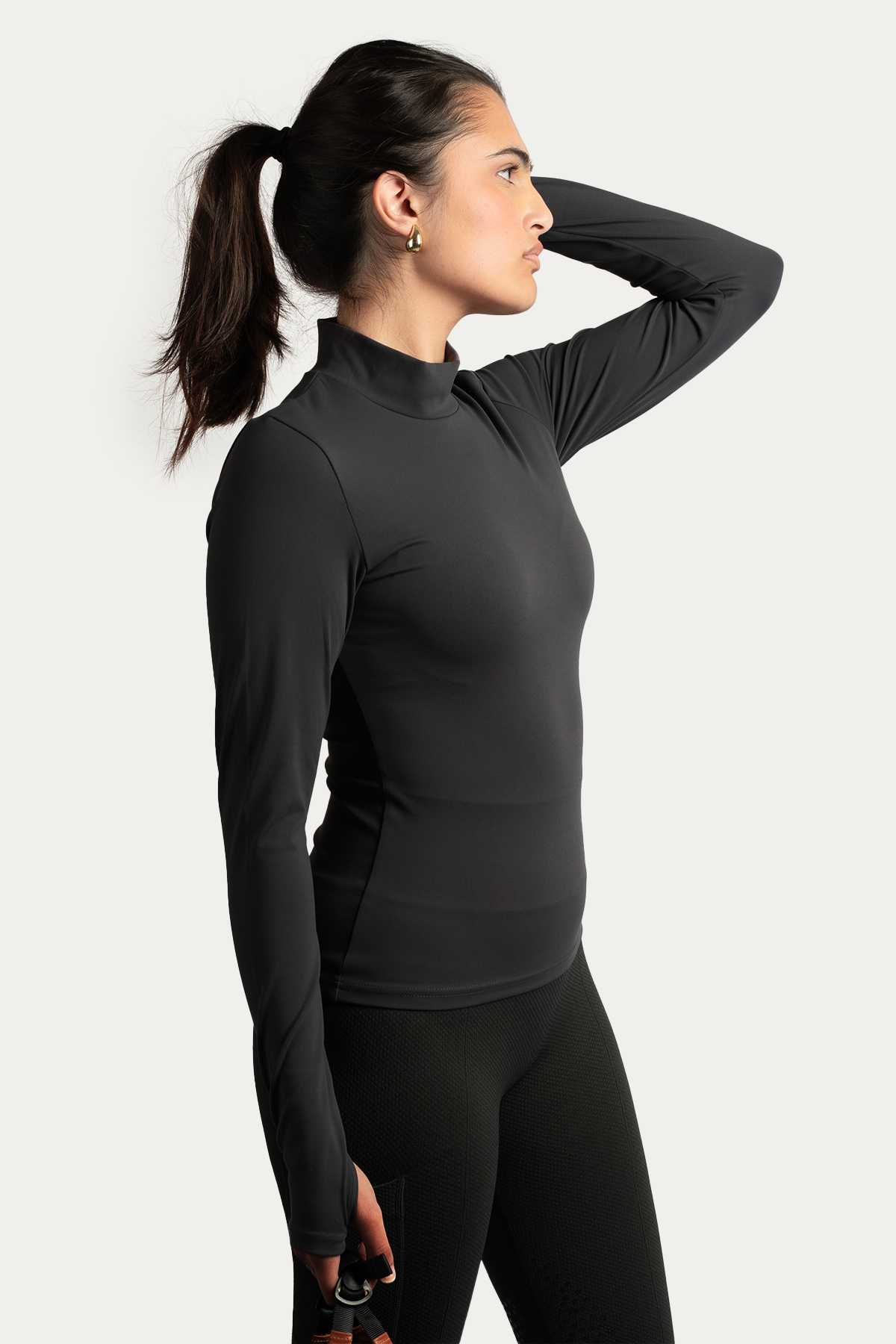 Crafted from a sportswear material that feels gentle against the skin, this turtleneck ensures freedom of movement during any activity. Its breathable and moisture-wicking properties keep you comfortable throughout the day, whether you’re in the saddle or spending time outdoors.