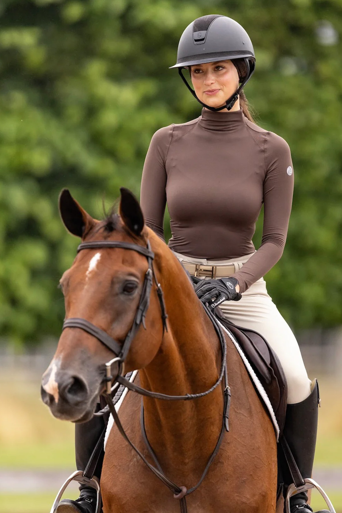 Crafted with 4-way stretch fabric, the Chloe top moves with you, allowing full range of motion whether you’re riding or training. The ventilation along the shoulders promotes airflow to keep you cool, while the moisture-wicking properties work to keep you dry and focused. Additionally, the built-in UV protection ensures you’re shielded from the sun, so you can ride with peace of mind on sunny days.
