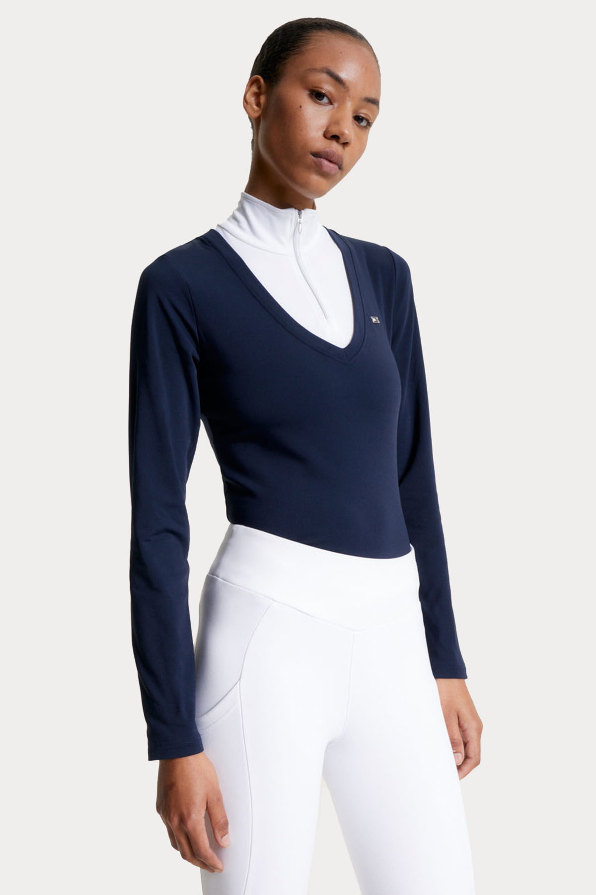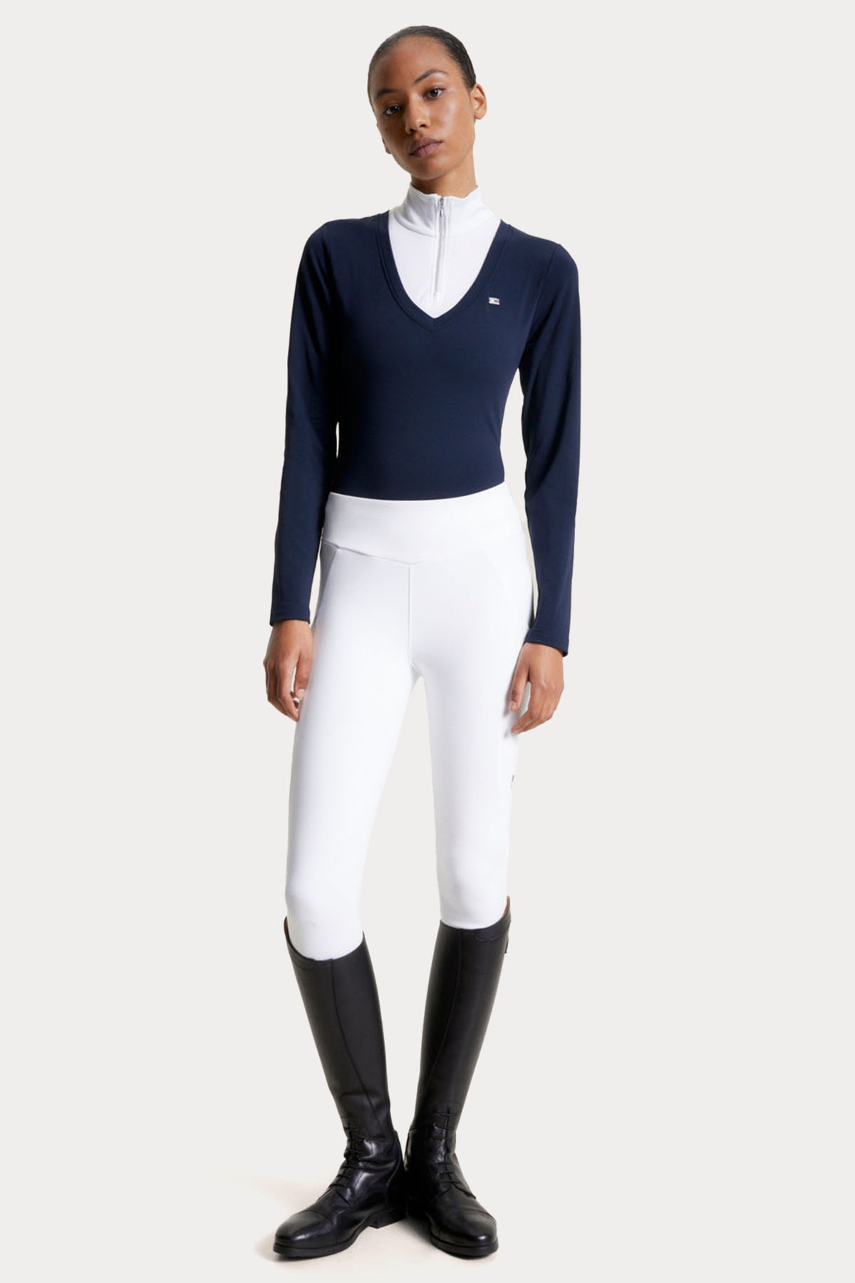 The Tommy Hilfiger 2-In-1 Thermo Competition Shirt combines style and performance for the modern equestrian. This elegant shirt features the classic Tommy flag logo at the chest and a stylish 1/4 zip neck in silver, ensuring clean lines and added warmth under your competition jacket.